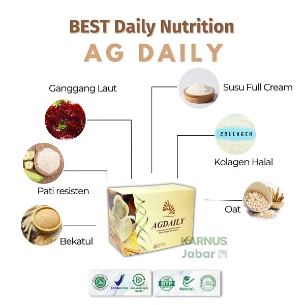 Pada umumnya, produk ini diformulasikan dengan bahan-bahan alami berkualitas tinggi yang diproses khusus untuk mempertahankan nilai gizi dan manfaatnya. AGDAILY sangat aman dikonsumsi dalam jangka panjang dan dapat memberikan manfaat bagi kesehatan dan kesejahteraan tubuh secara menyeluruh.